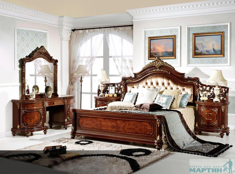 Возможная комплектация: Кровать 180×200 Элиана + Туалетный стол с зеркалом Элиана + Тумба прикроватная Элиана ( 2 шт. ) + Шкаф 6-ти дверный Элиана