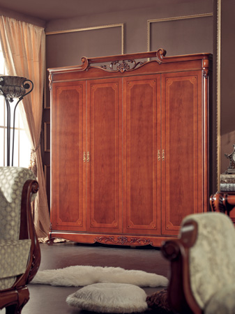 Размеры: кровать - 188*228*133см., тумба - 65*42*68см., туалетный стол с зеркалом - 145*50*76см., гардероб 4-х дверный - 210*64*219см.