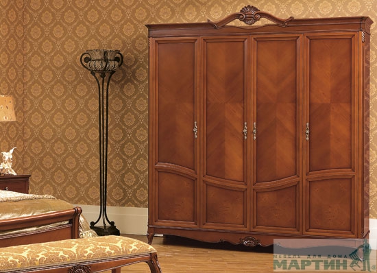 Спальня «Элеонора» Страна-производитель Китай. Материал — массив липы, МДФ. Покрытие — шпон бука, в комплектацию кровати входит ортопедическое основание для матраса размером 180×200см. Все модули продаются отдельно. Стоимость от 48 060 руб.