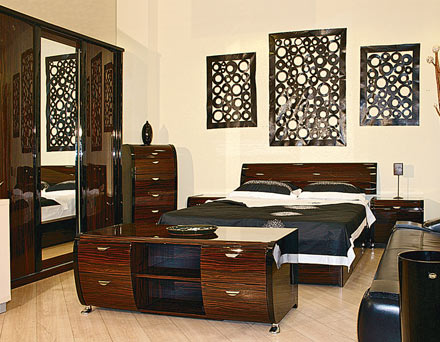 Спальня «Гвинета» фабрика «Эдем». В комплектацию спальни входит: кровать (размер спального места 1600(1800)х2000 мм), прикроватные тумбы, комод, комод с зеркалом, тумба под ТВ, шкаф-купе. Материал: МДФ, лак Цвет: зебрано/венге. Гвинета — прекрасный образец сочетания классического и современного стиля, чувственности и строгости, эстетики и функциональности. Она комфортабельна, удобна и готова каждый день уносить Вас в волшебный мир снов. Спальный гарнитур «Гвинета» займет достойное место в интерьере людей уверенных в себе, ценящих строгость и содержательную глубину того, что называется стилем.