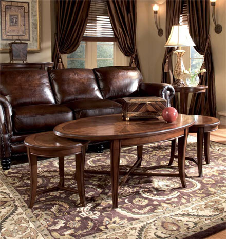 Традиционный европейский цветовой тон подчеркнут особой формой ножек с удобным упором для ног. Двауникальных маленьких столика идут в комплекте с большим овальным коктейльным столом Кингстон. Коллек-ция создана из шпона ясеня, с рисунком, характерным для этого дерева и с инкрустацией под грецкий орех.Это идеальное сочетание с любыми стульями в классическом стиле.Производитель: США-Вьетнам