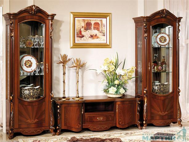 Материал: МДФ, покрытие - матовый лак. Размеры: витрина 1-дверная - 78*50*222см., тумба подТВ - 160*56*57см.