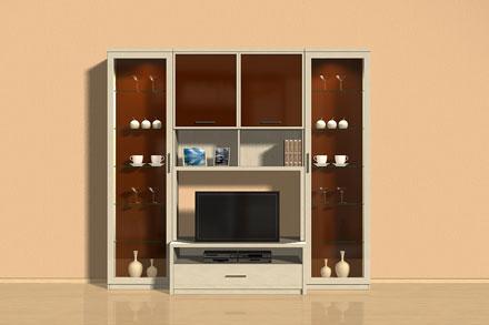 Страна-производитель Россия.   Материал: ДСП, стекло. Размеры, мм: 3600*2210 (H)*446 (580). Все модули продаются отдельно.   Стоимость 35 975 руб.
