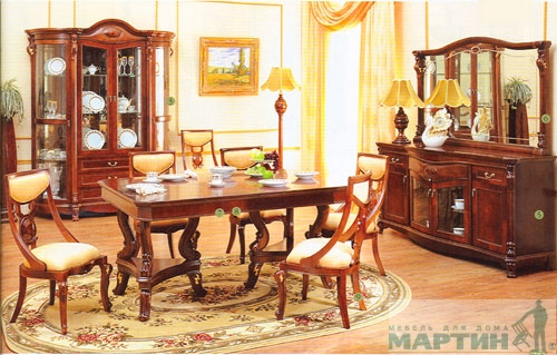 Модельный ряд: витрины 1дв., витрина 2 дв., витрина 4 дв., витрина угловая, зеркало к камоду, комод, стол обеденный, стул для обеденного стола, стол обеденный раздвижной.
