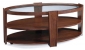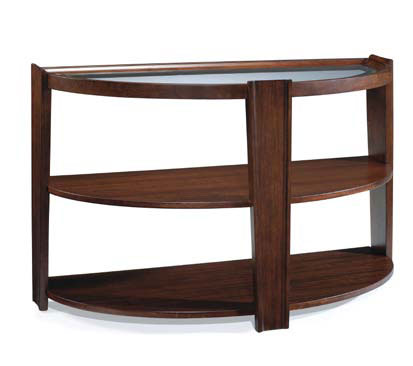 Коллекция столов Нуво вносит новое видение в классический дизайн, благодаря трем уровням плотных круглых овальных полок и стеклянным вставкам, которые служат отличительными признаками этого стиля. Стол сделан из шпона дерева сапеле (африканский махагон) с коричневым покрытием, подчеркивающим «современность» стиля. Производитель: США-Китай