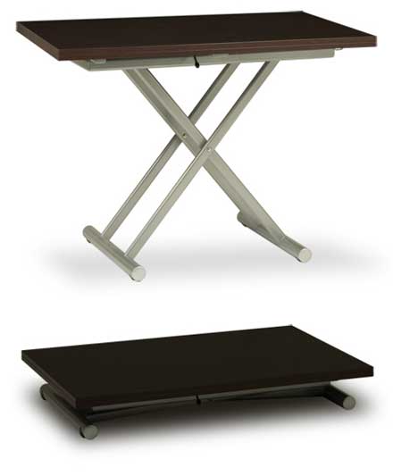 Стол-трансформер «Up&under» Стол-трансформер позволяет изменять высоту стола от 23см до 83см, т.е. от высоты низкого журнального стола до высоты барной стойки. Стол имеет двойную столешницу, которая поворачивается вокруг центральной оси на 90 градусов и раскладывается до размеров 140х110см. Стол имеет скрытые колесики, которые позволяют его легко перемещать. Материалы: дерево, металл. Цвет - венге. Размеры: 110x70 (140x110)см, высота 23-83см.  цена 23000